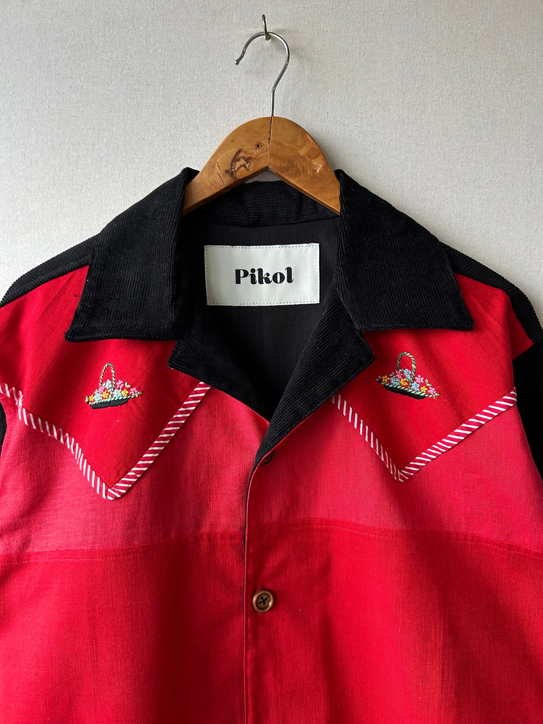 Shirt made from a vintage linen tablecloth. Fabric used may have slight imperfections