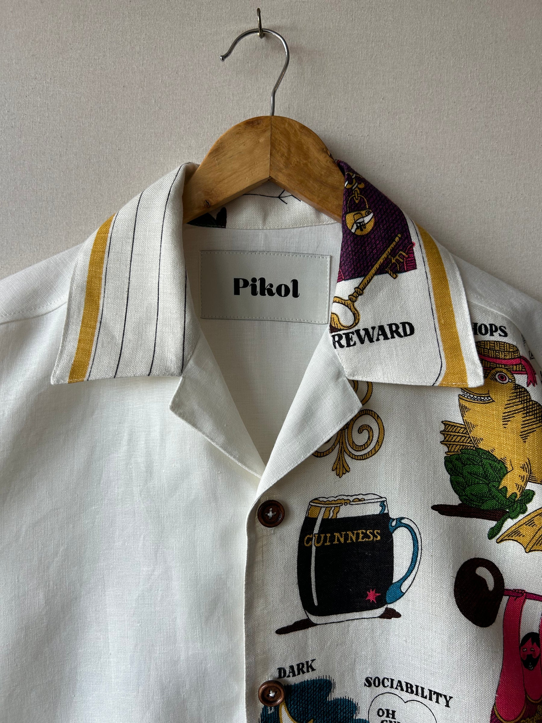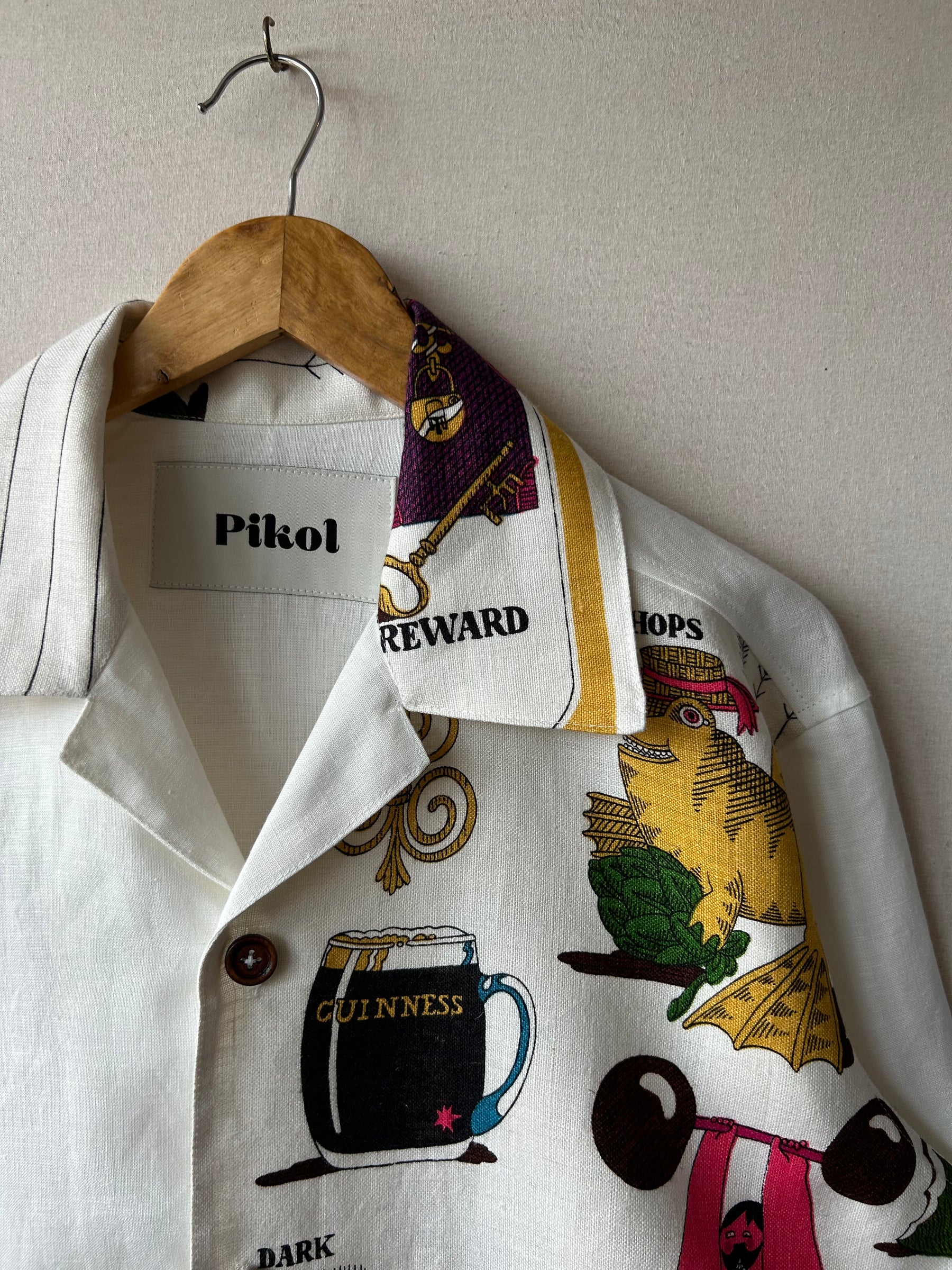 Shirt made from a vintage linen tablecloth. Fabric used may have slight imperfections