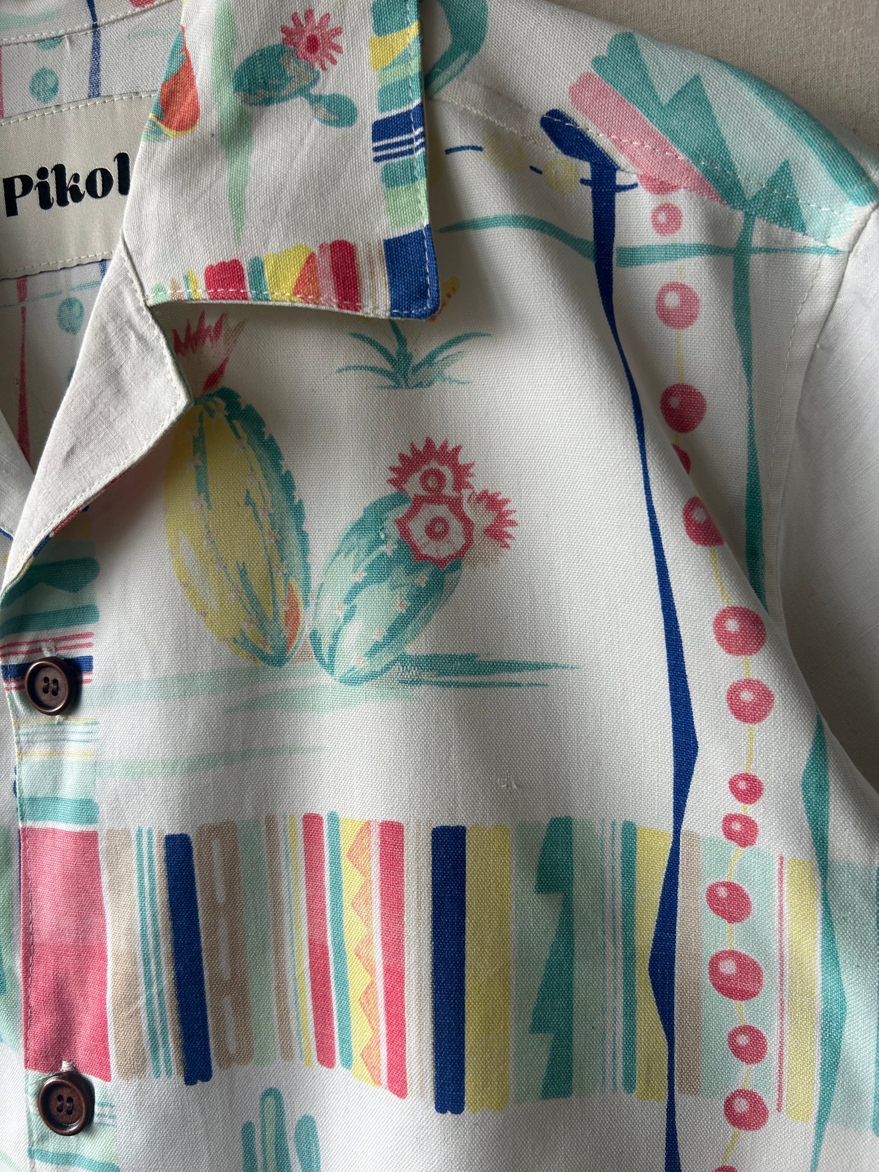 Shirt made from a vintage linen tablecloth. Fabric used may have slight imperfections