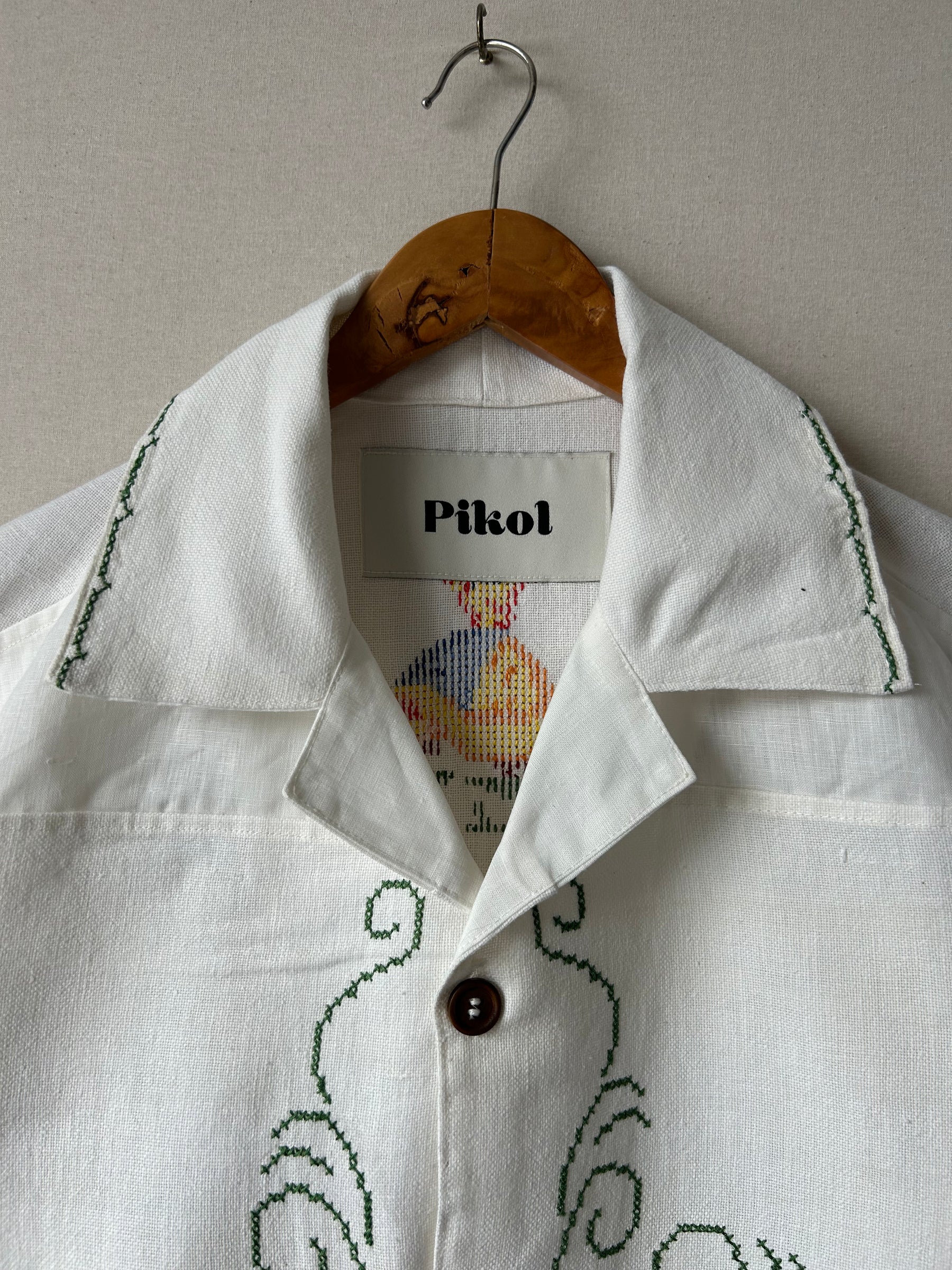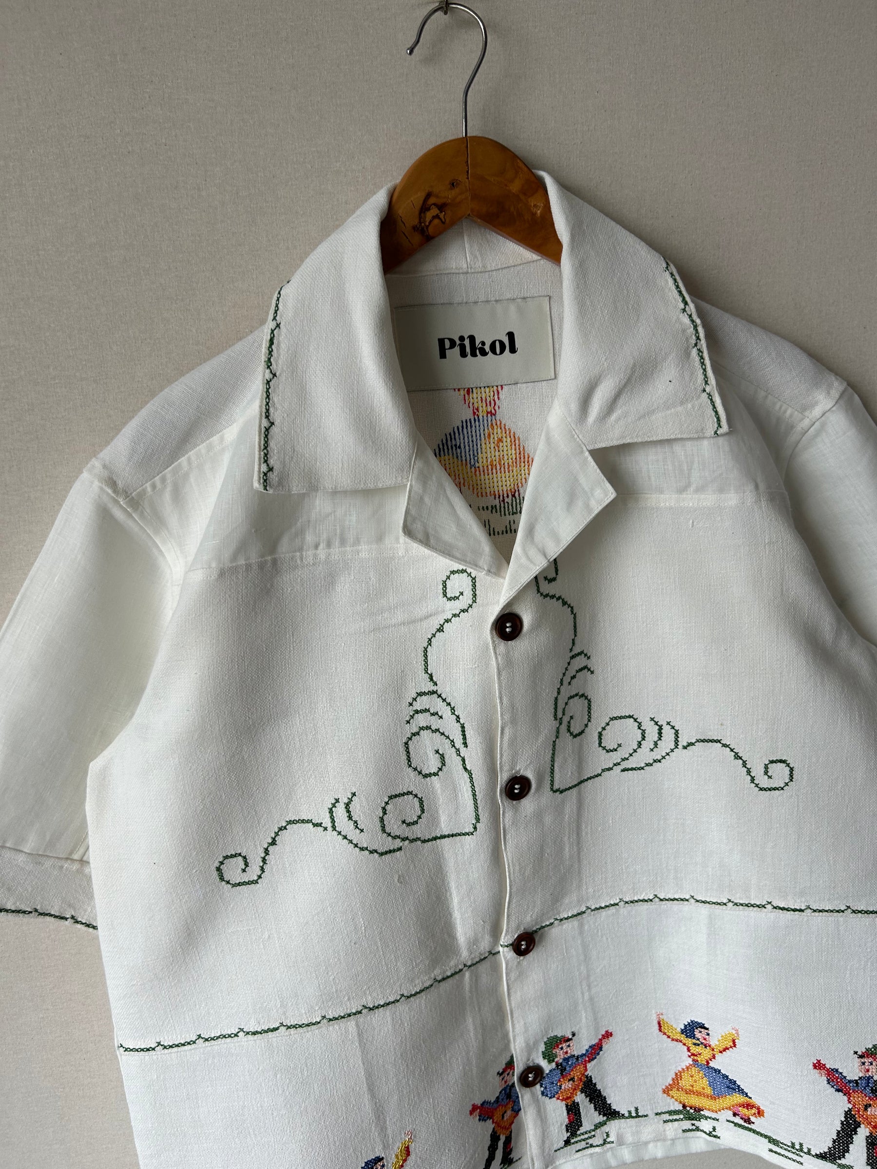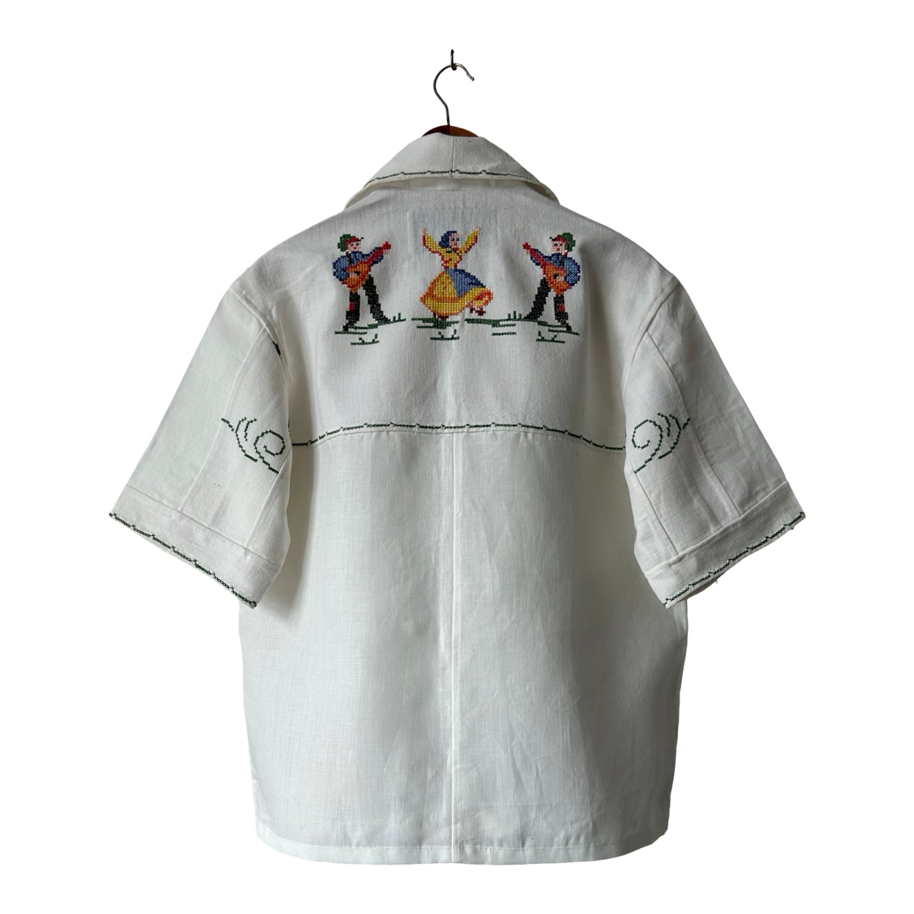 Shirt made from a vintage linen tablecloth. Fabric used may have slight imperfections