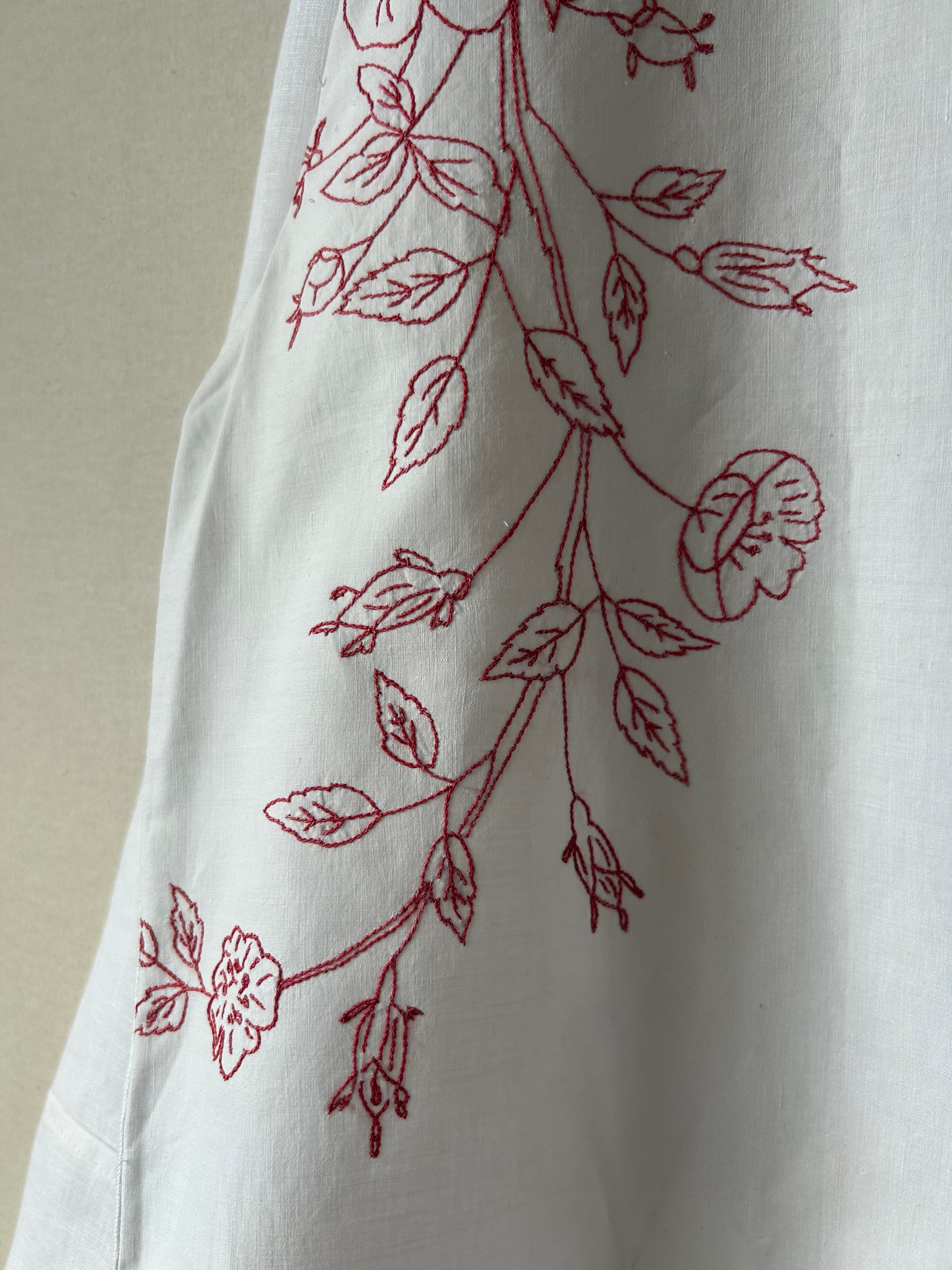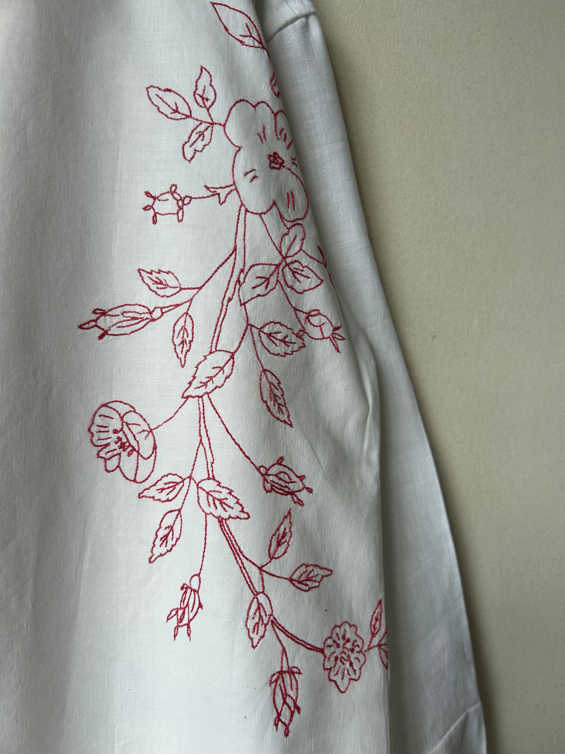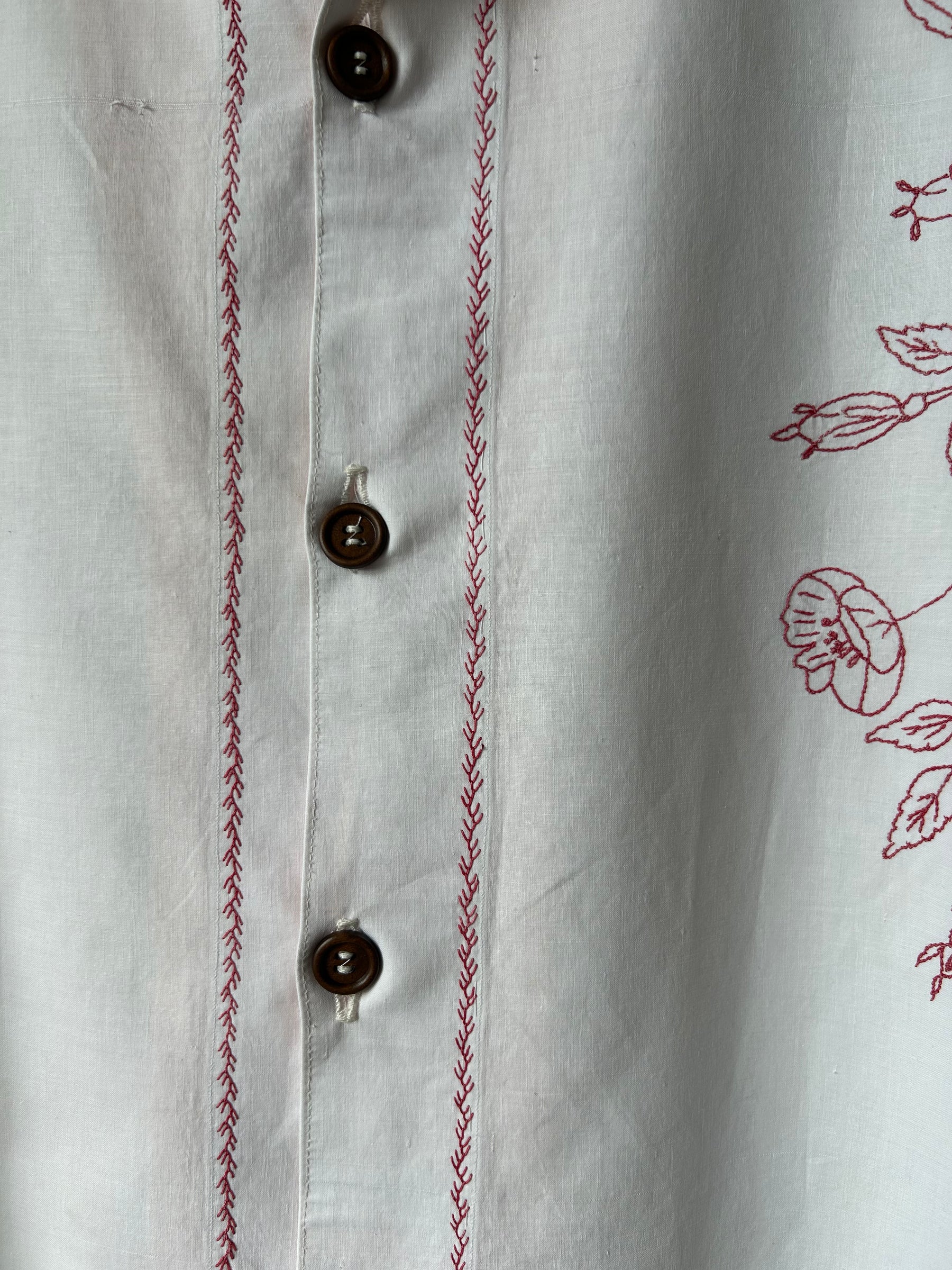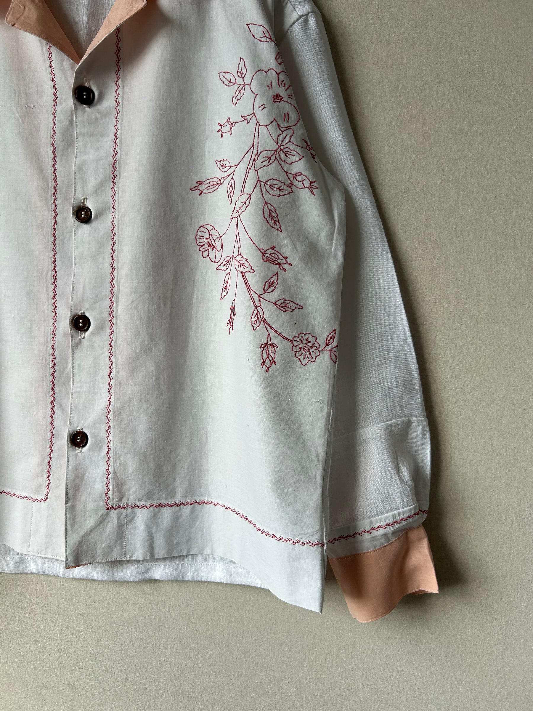 Shirt made from a vintage linen tablecloth. Fabric used may have slight imperfections