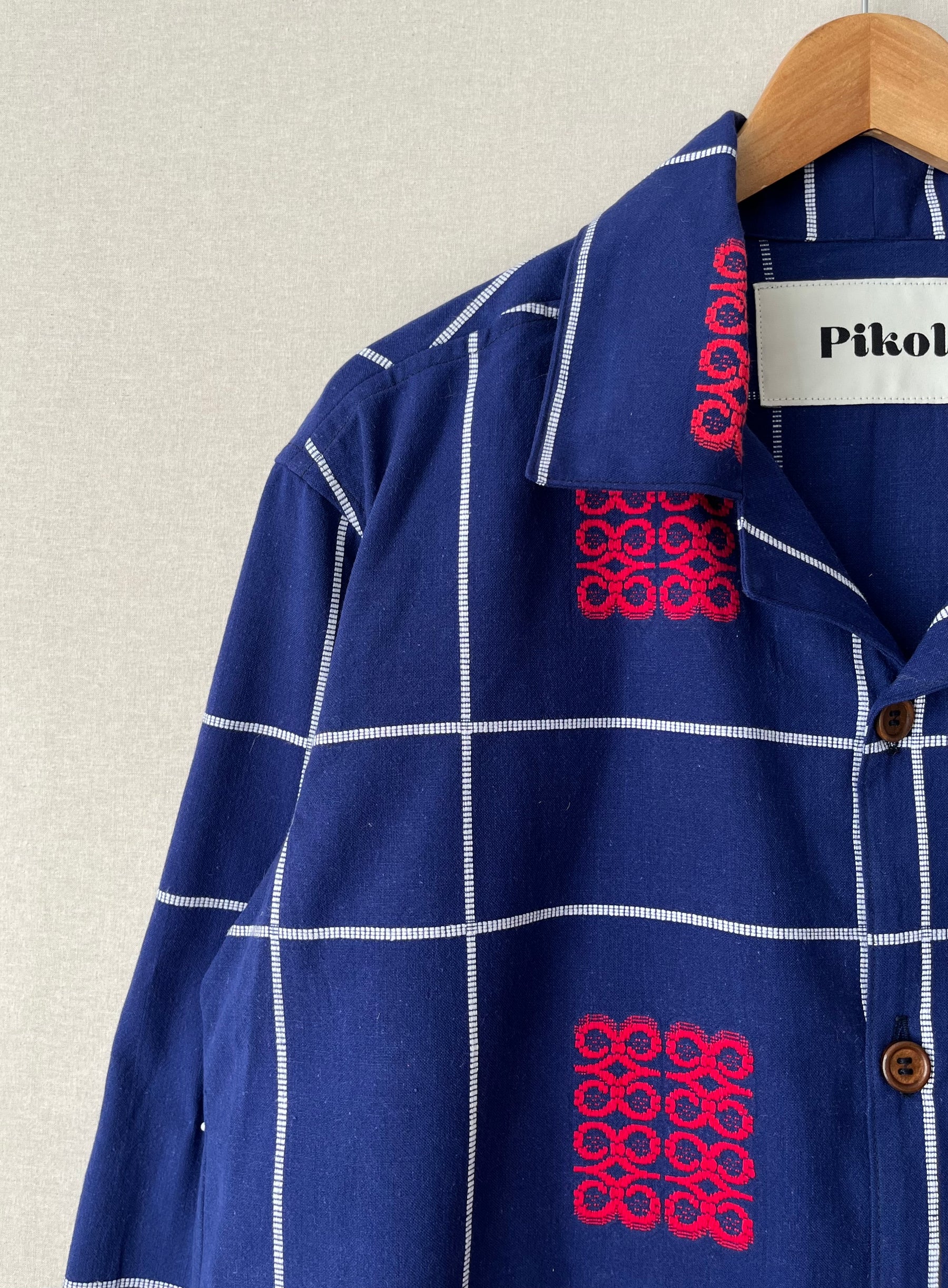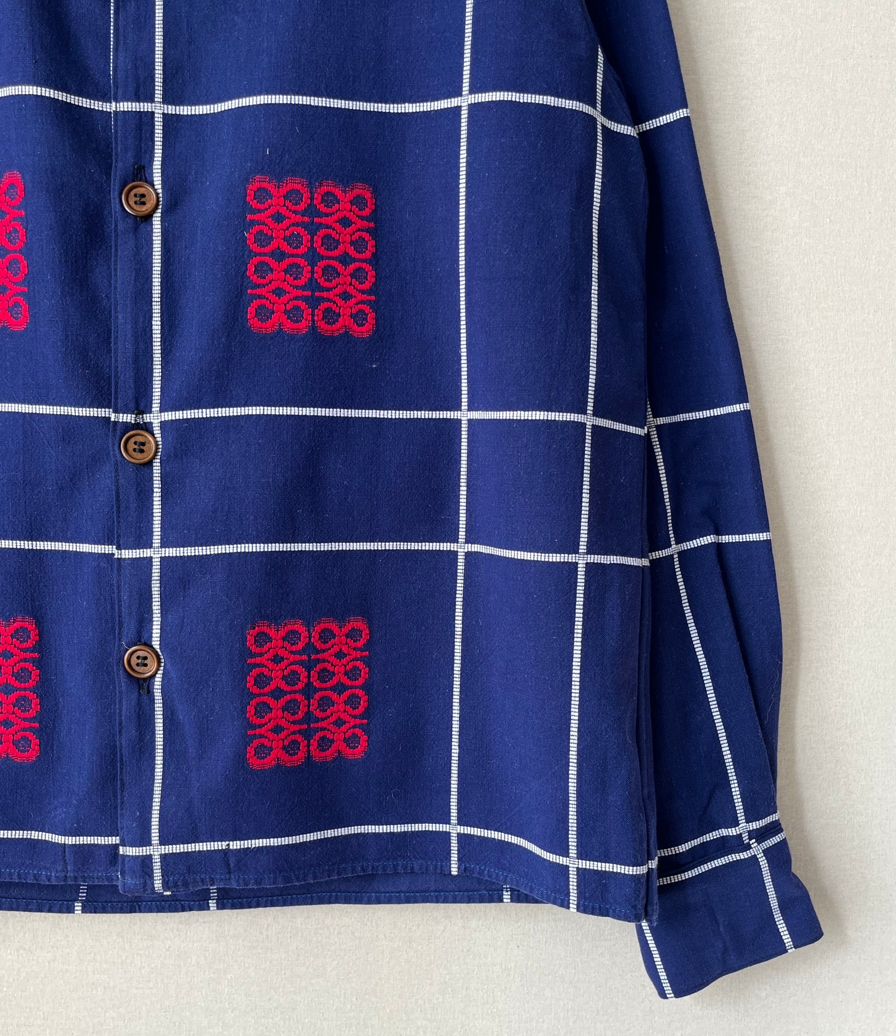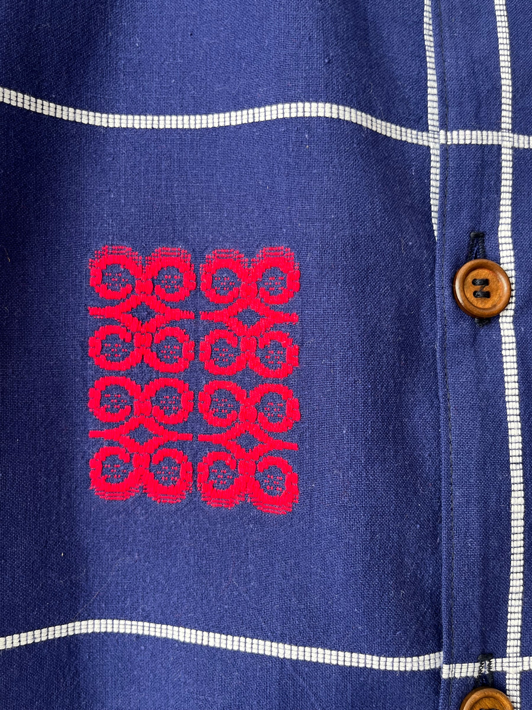 Shirt made from a vintage linen tablecloth. Fabric used may have slight imperfections