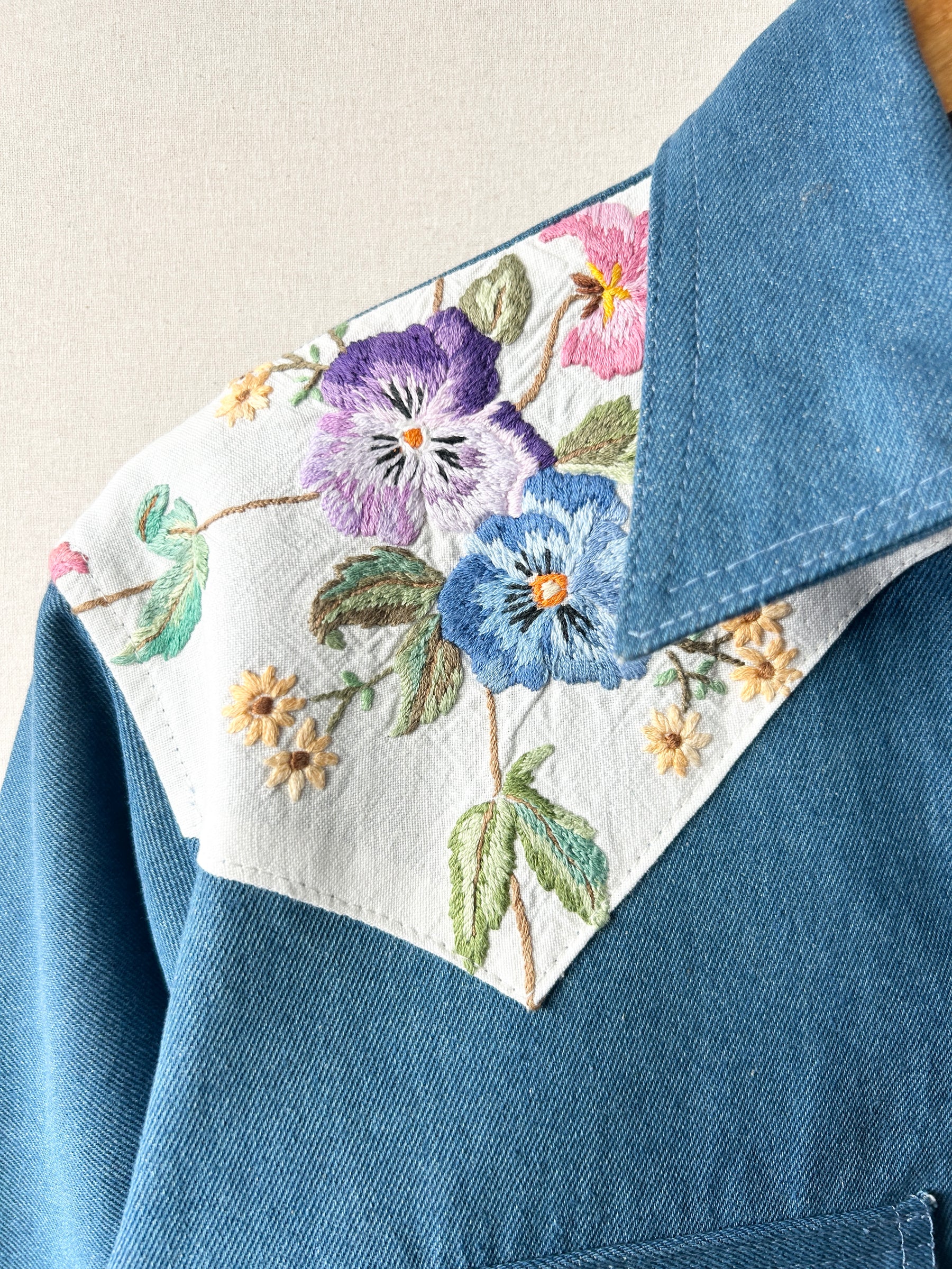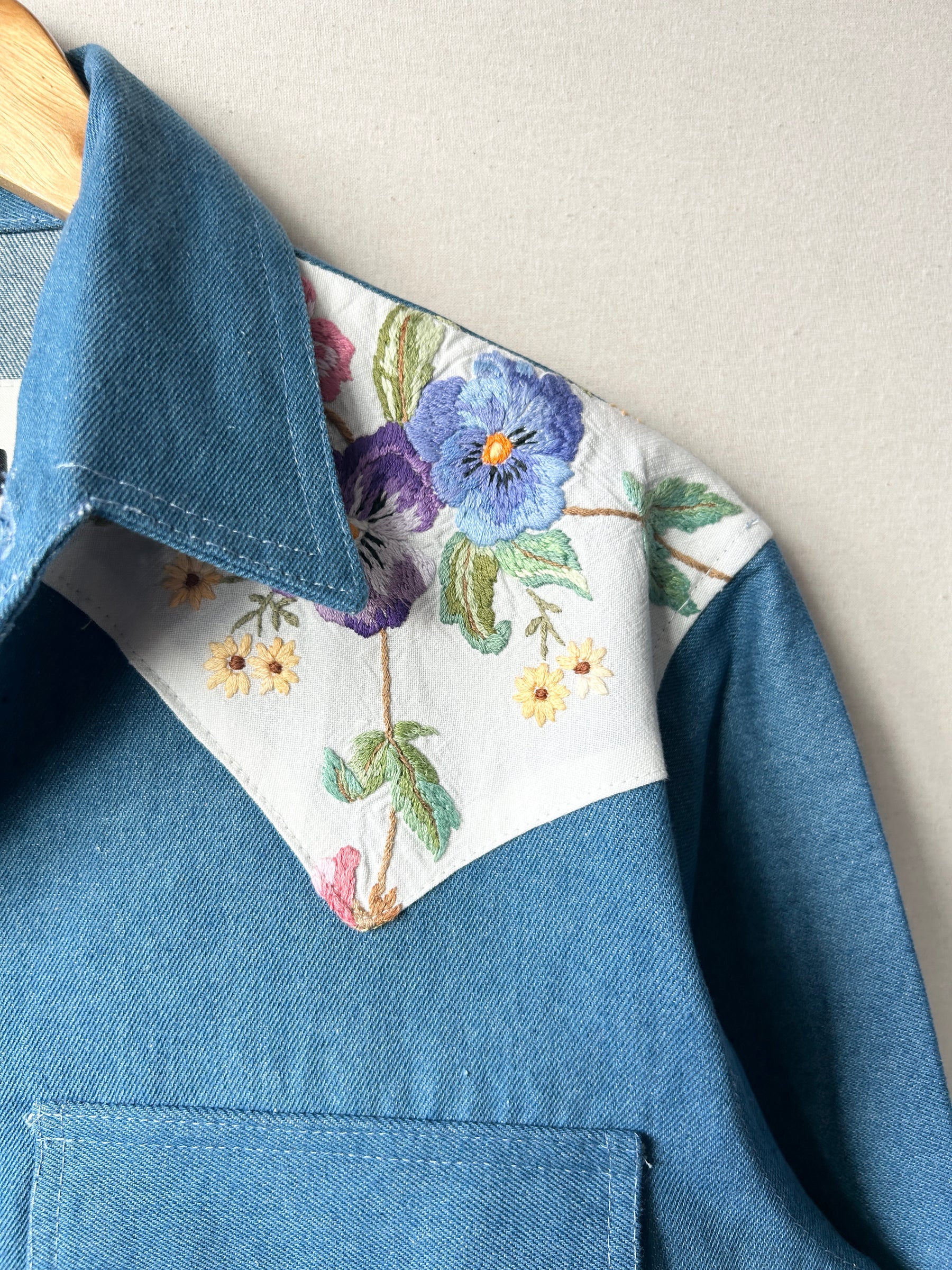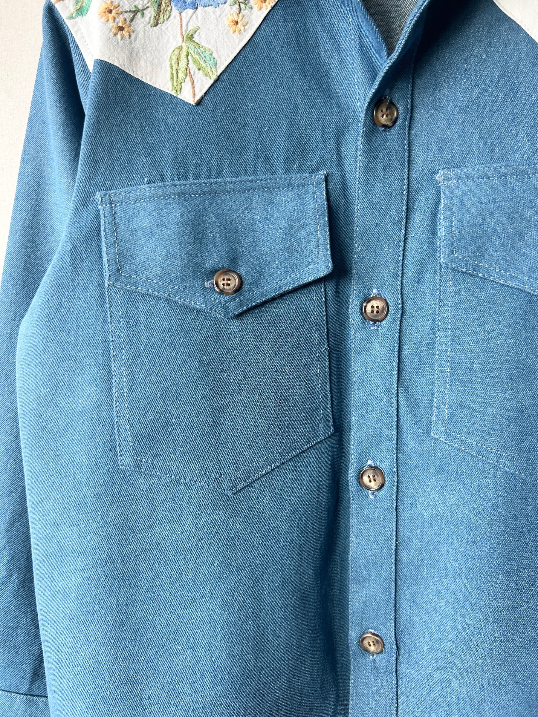 Shirt made from a vintage linen tablecloth. Fabric used may have slight imperfections.