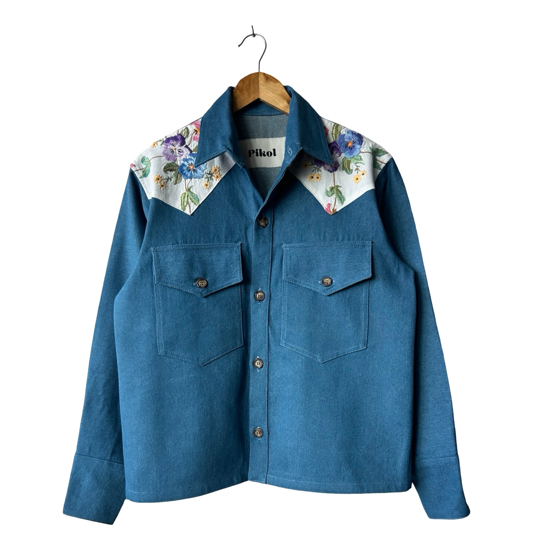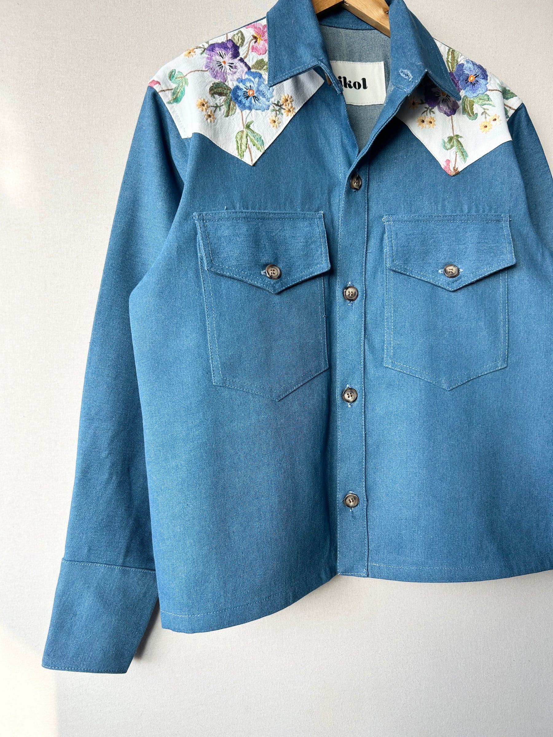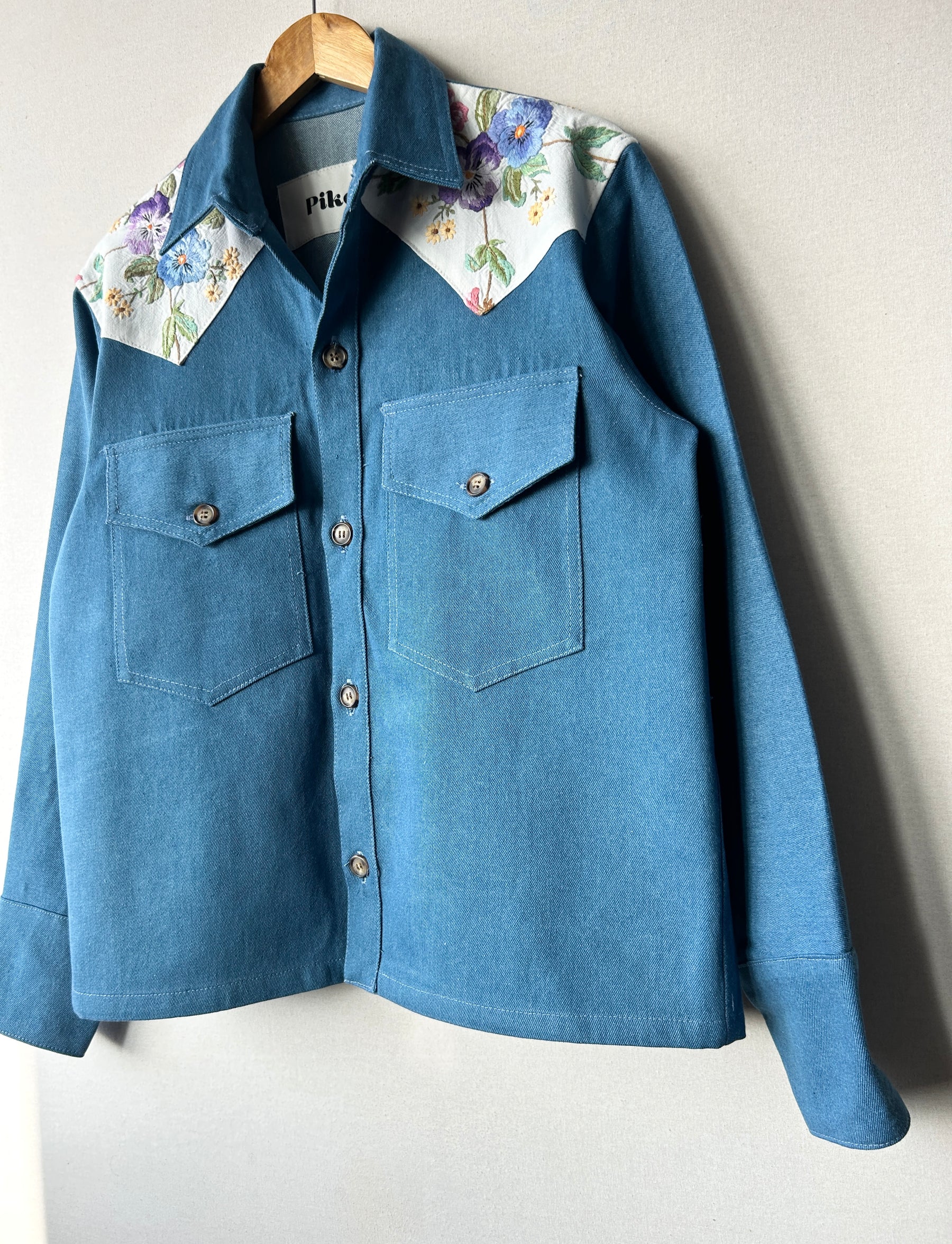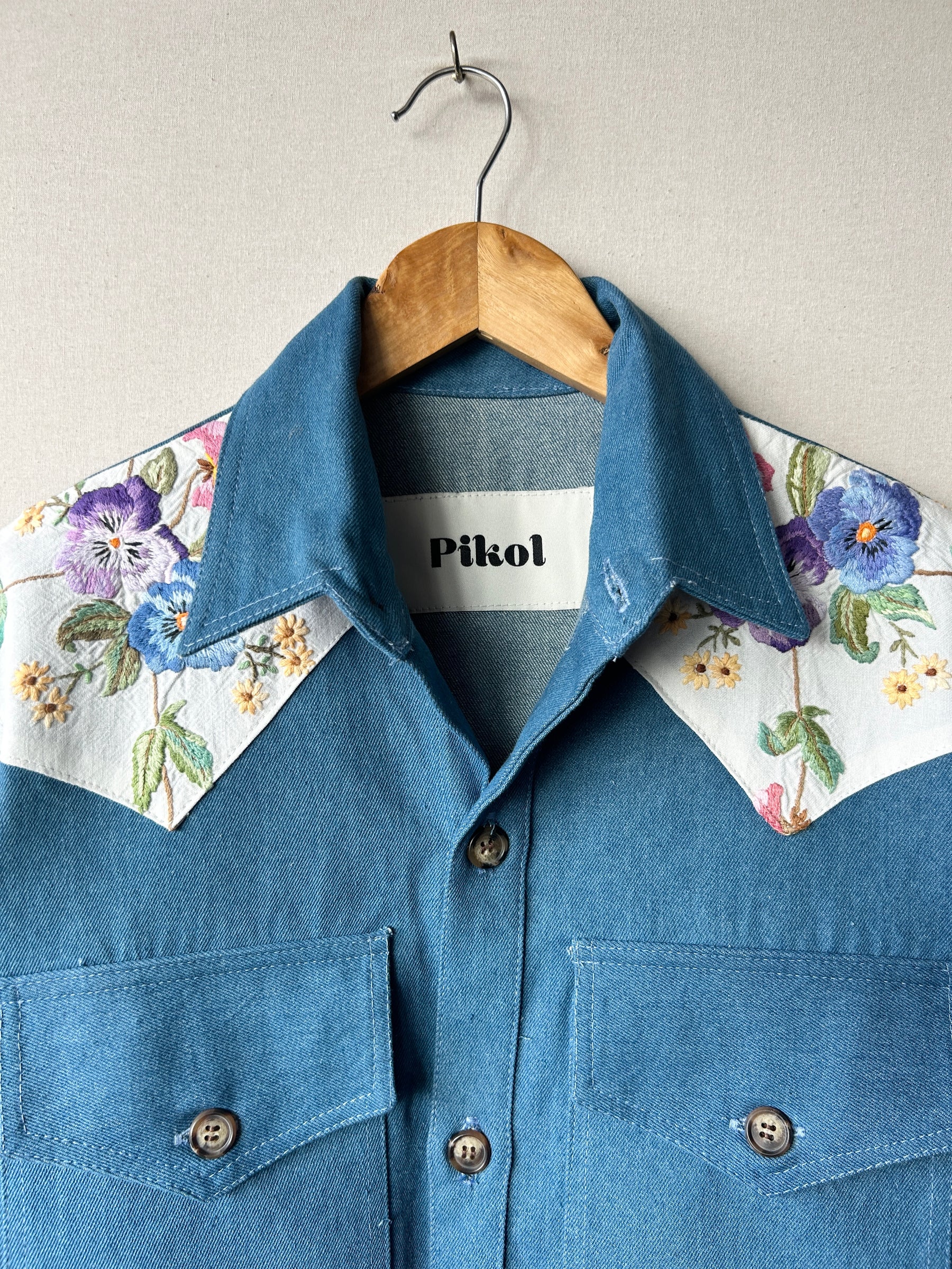 Shirt made from a vintage linen tablecloth. Fabric used may have slight imperfections.