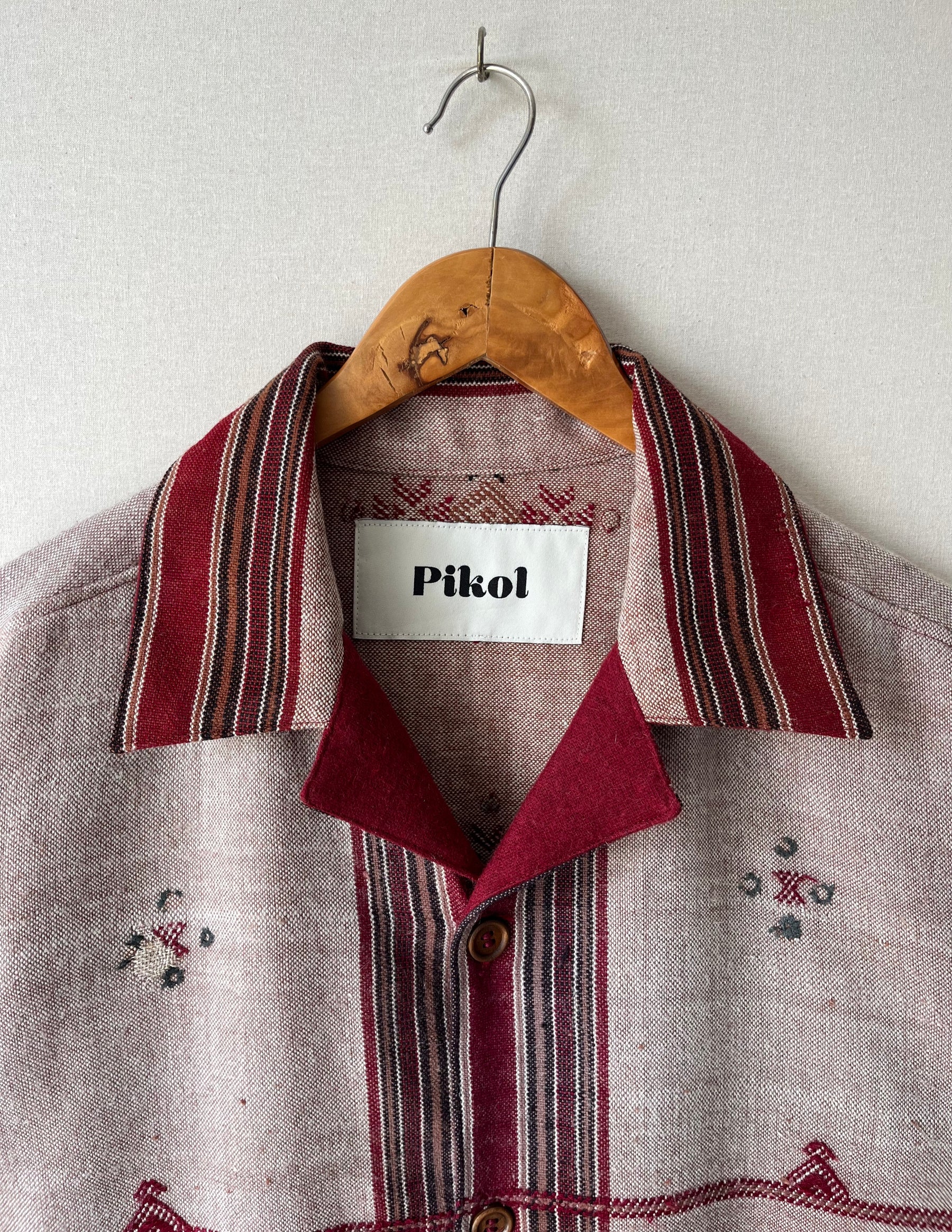 Shirt made from a vintage linen tablecloth. Fabric used may have slight imperfections